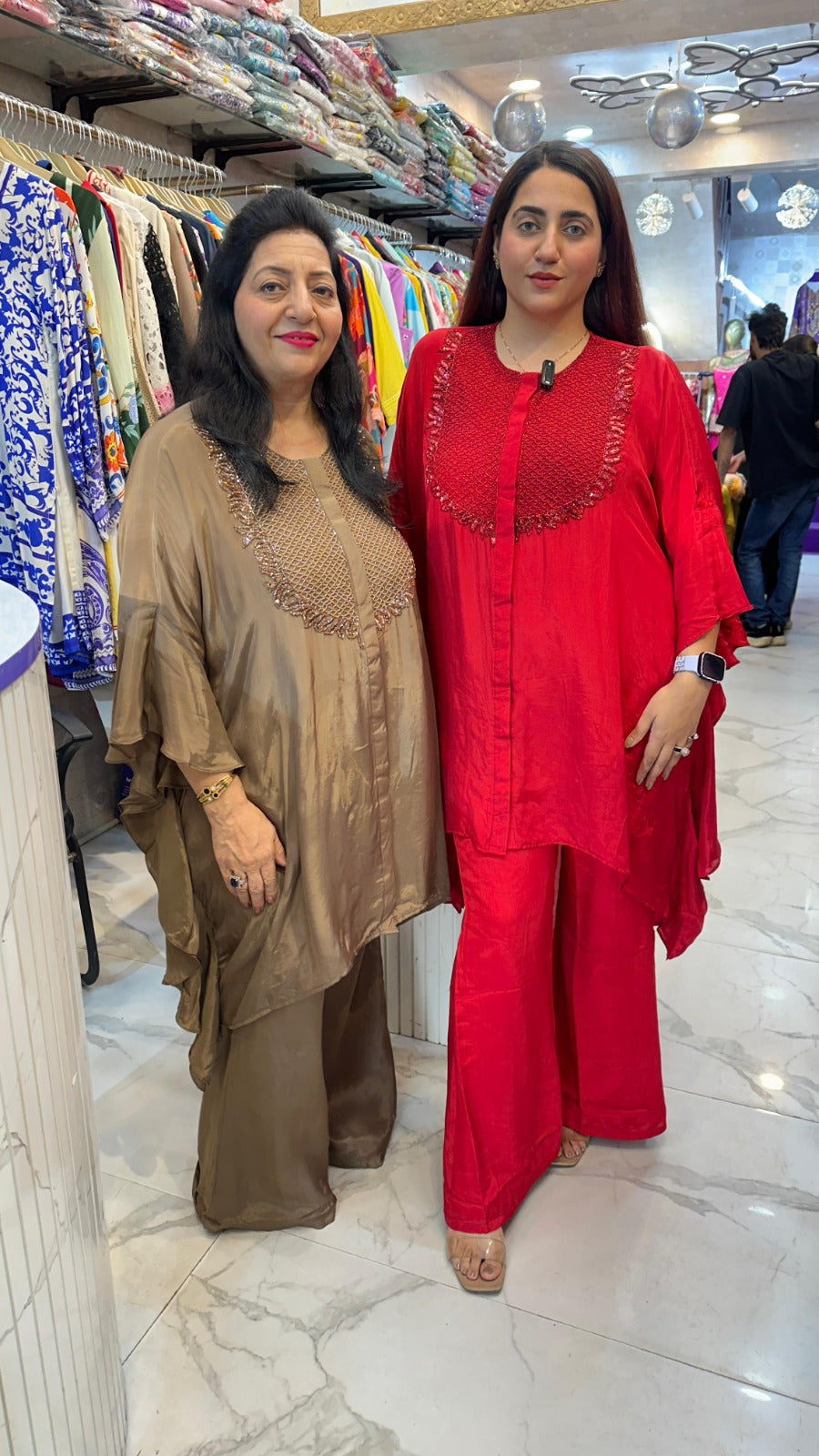 Elevate your wardrobe with this Multicolor Crepe Kaftaan Set, expertly crafted for women who appreciate both style and comfort. Made from premium crepe fabric, this set is lightweight and breathable, perfect for all-day wear. The intricate handwork adds a touch of artisanal elegance, making each piece unique. Ideal for festive occasions or casual outings, this kaftaan set blends vibrant colors with meticulous detailing to enhance your look effortlessly.