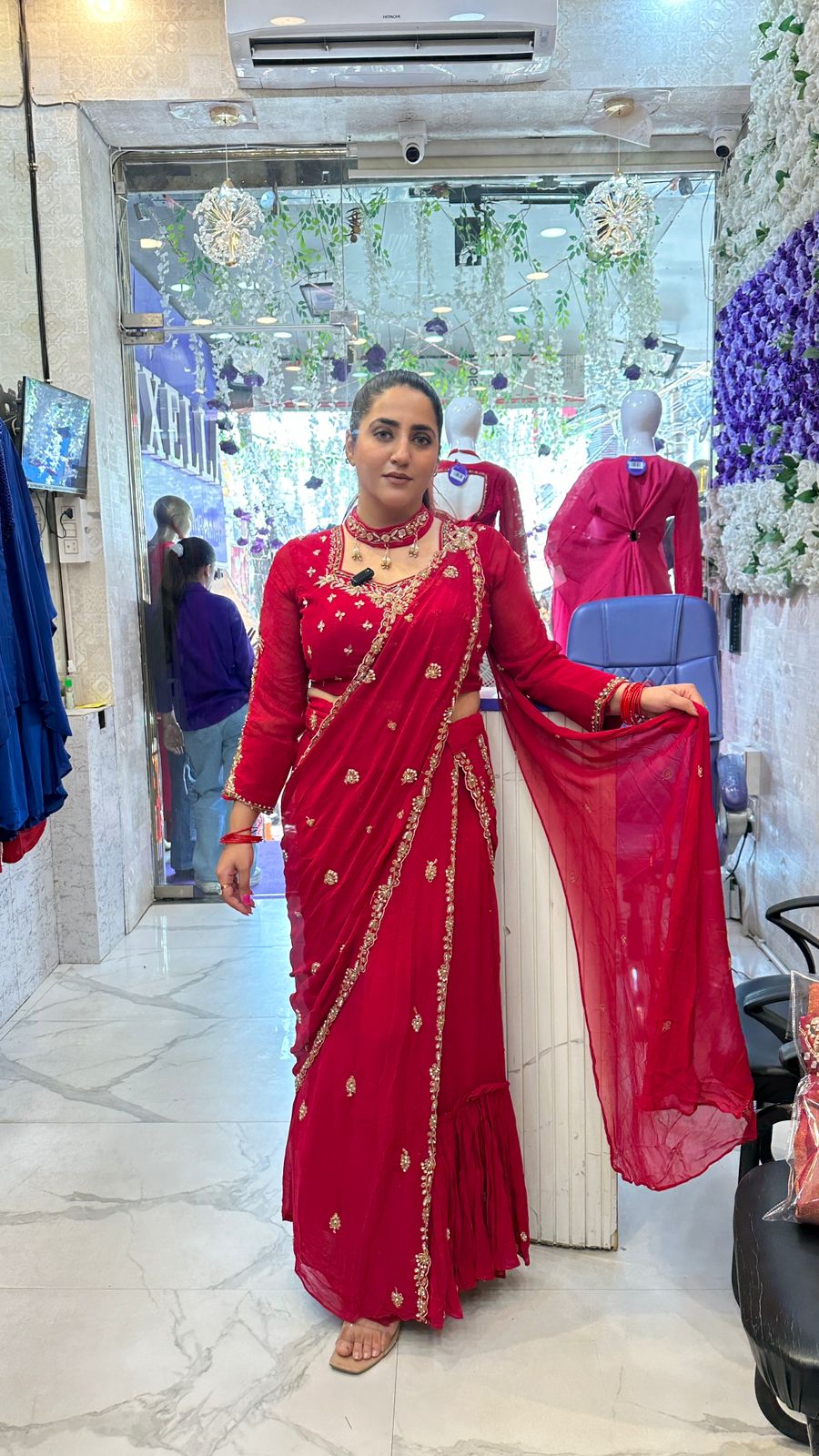 Experience elegance with the "RAKTIMA" Draped in Grace, Styled for the Spotlight FS58. Meticulously designed, this piece combines refined draping with a flattering silhouette to ensure you stand out with effortless sophistication. Perfect for those who seek a timeless yet striking look, it offers both comfort and style for any special occasion. Elevate your wardrobe with this expertly crafted ensemble that balances grace and presence seamlessly.