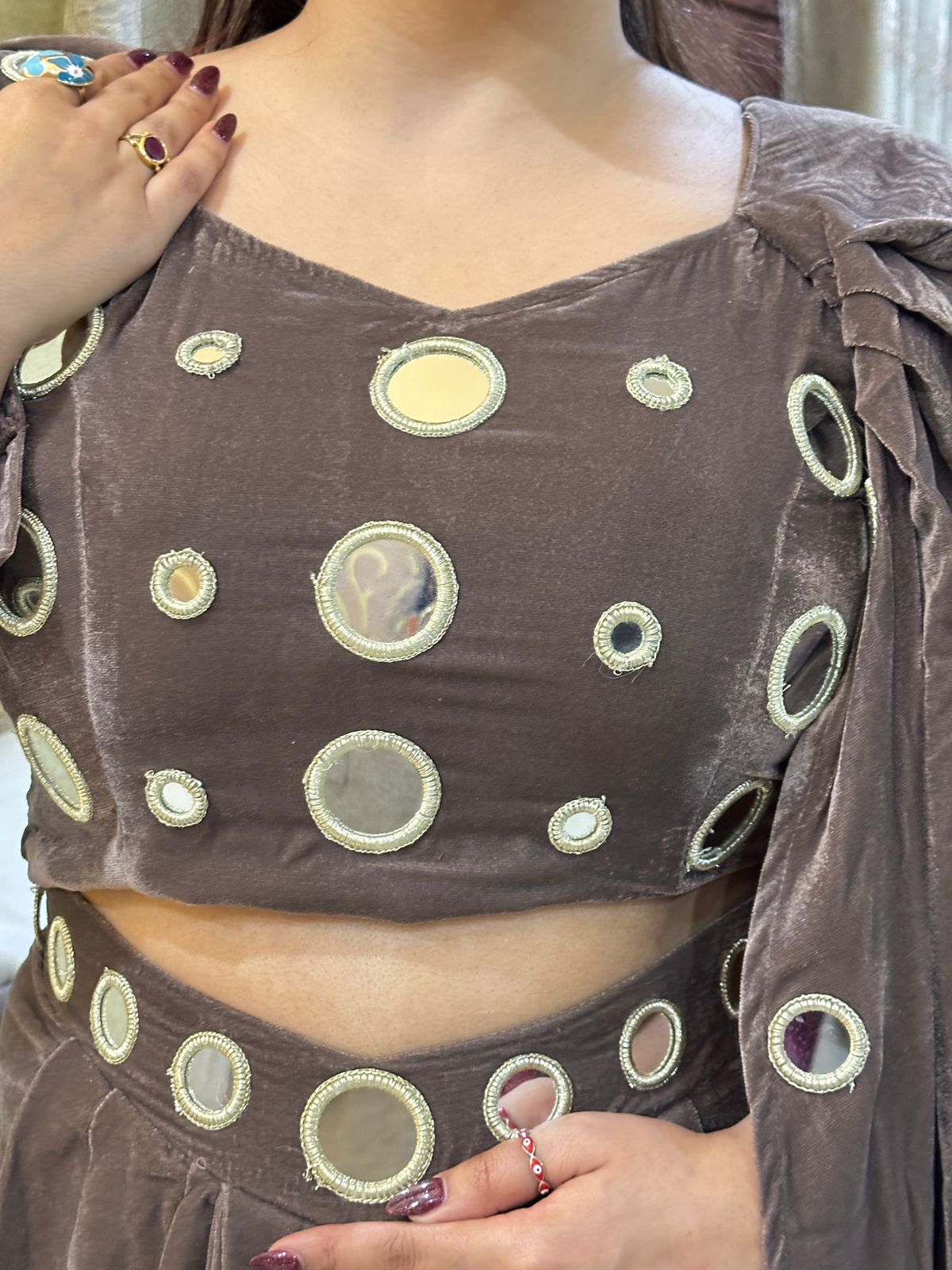 The "SHAHI" Drape Saree in luxurious velvet combines traditional elegance with contemporary draping. This sophisticated piece features the signature FS164 design, crafted from premium velvet fabric that offers a rich, lustrous finish. The drape construction ensures effortless styling and graceful movement, making it ideal for both festive occasions and formal gatherings. Perfect for those seeking refined craftsmanship and timeless appeal in their ethnic wardrobe.