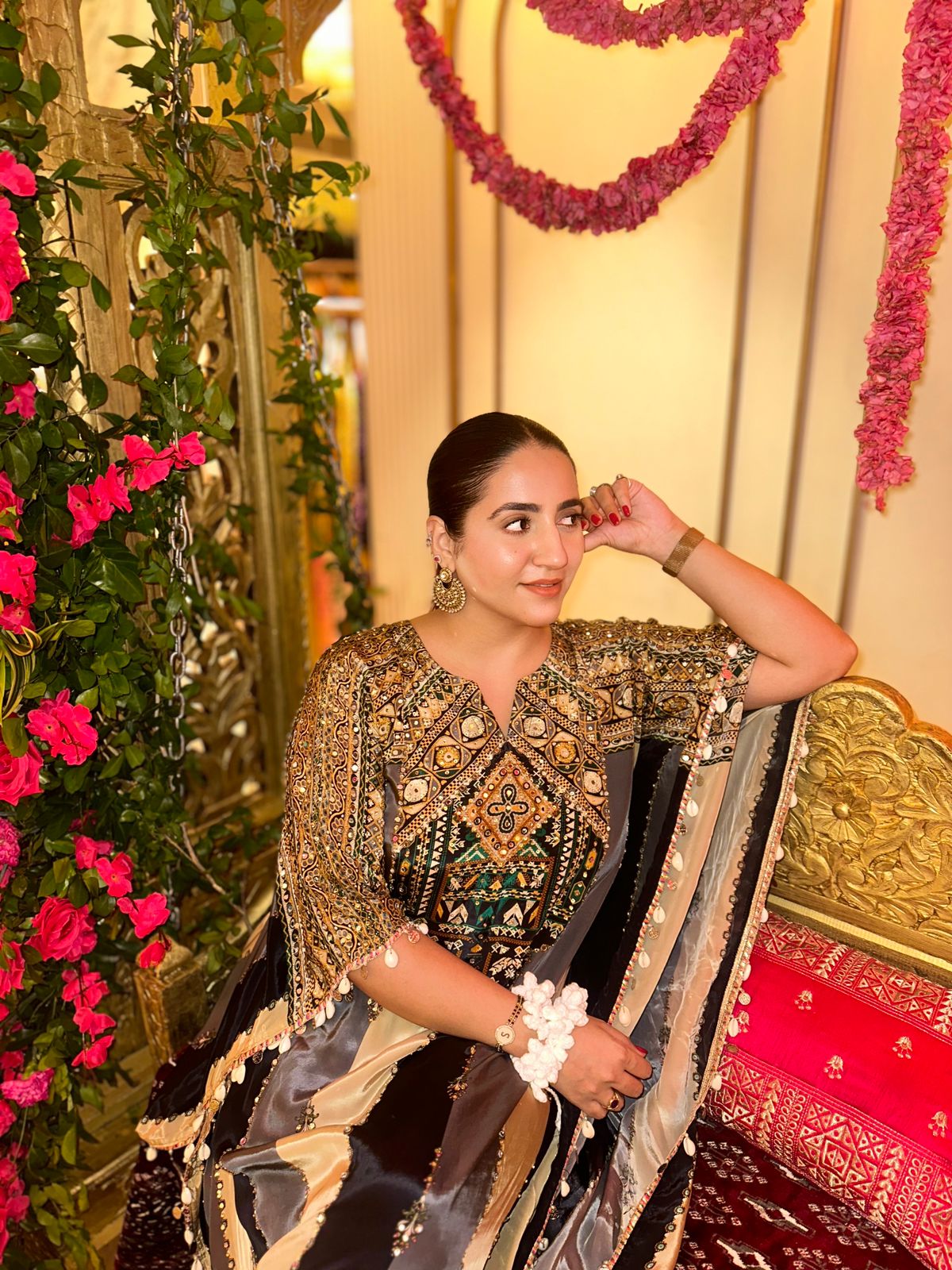 Experience timeless sophistication with the "TANABANA" Elegance Draped in Culture set. Crafted from flowing crape fabric, this kaftaan paired with matching pants blends cultural heritage with modern style. Its graceful drape and breathable texture offer both comfort and elegance, making it ideal for special occasions or refined everyday wear. The ensemble highlights expert craftsmanship, ensuring a polished look that honors tradition while embracing contemporary design.