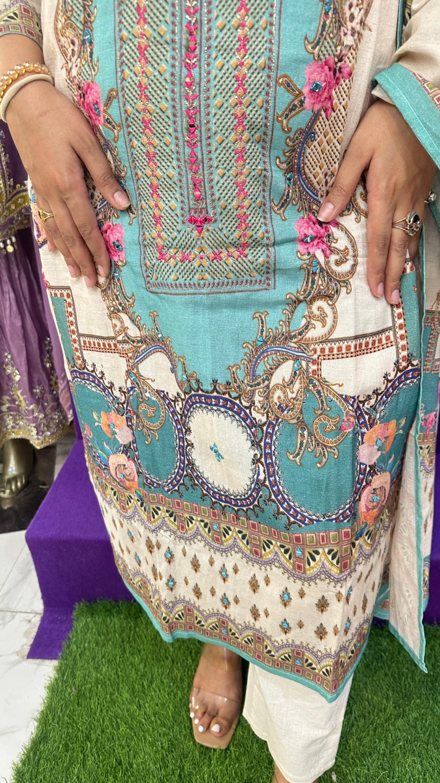 "VIRSA" Blue Khadi Heavy Printed Western Wear Suit With Dupatta For Women FS11